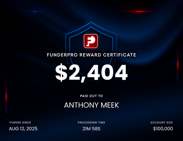 While working with FunderPro and reaching funded status with the Regular Evaluation, Swing Evaluation, or Fast Track, you will be eligible to receive your first payout on day one if you manage to generate a profit. However, after your first payout, you will be eligible to receive payouts on a daily, on-demand basis. Your profit split will consist of a generous 80% based on the profit that you have generated on your funded account.